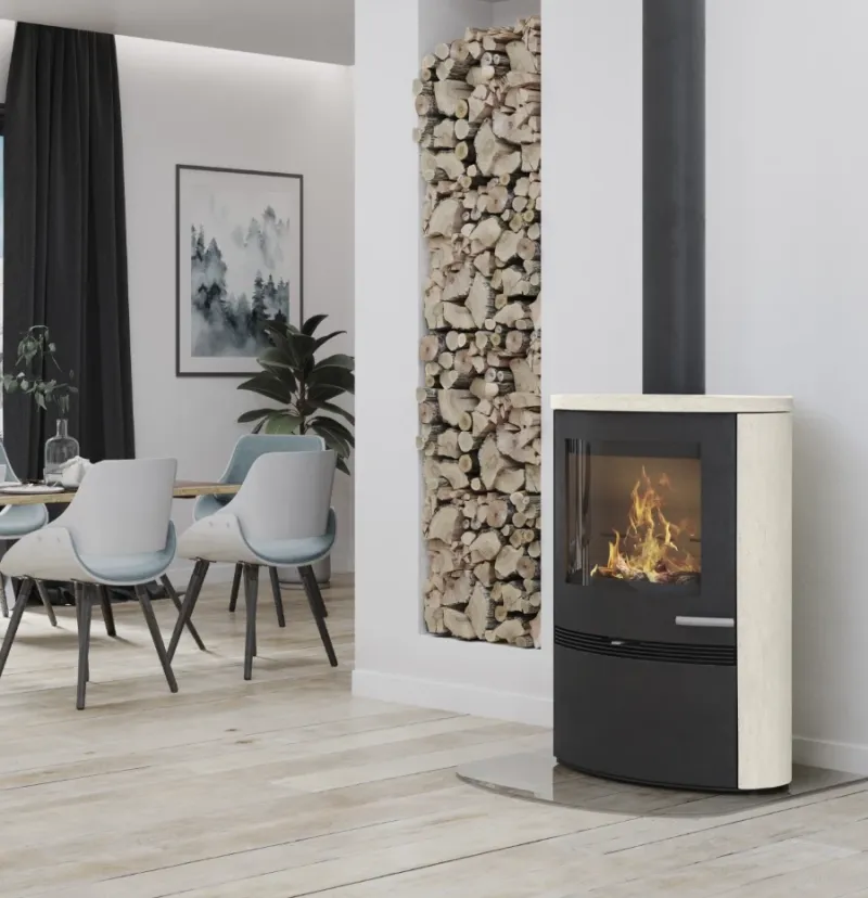 Stor og eksklusiv brændeovn fra Termatech TT22HS White sandsten.