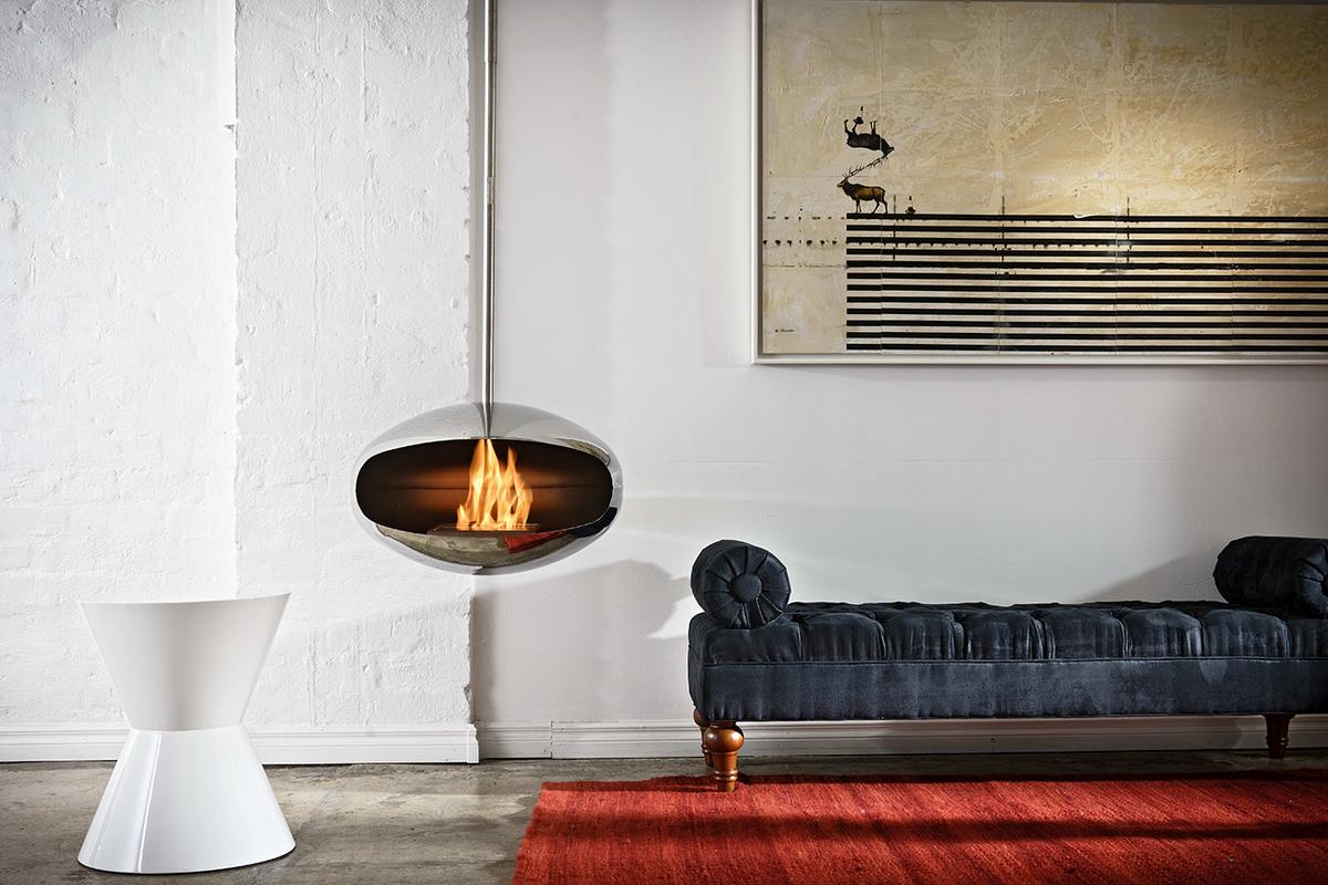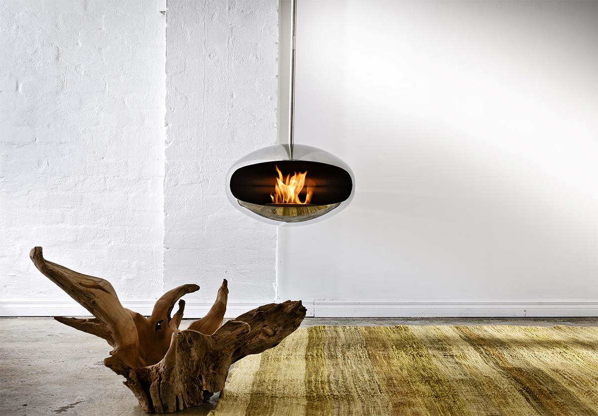 Cocoon Aeris er utrolig elegant biopejs, der med sit særlige ophæng fremstår som en svævende globe af ild i rummet. Globen kan roterere 360 grader, så ilden kan ses både fra sofaen eller lænestolen efter ønske.