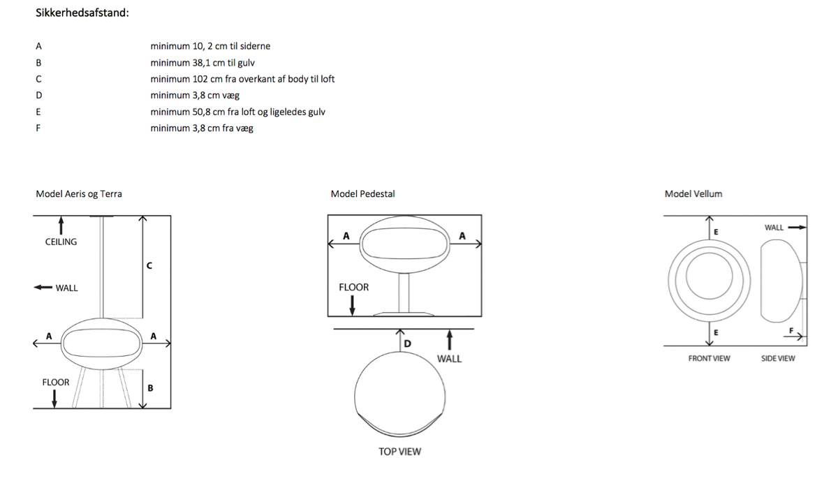 | Sikkerhedsafstand: | Se detaljebillede øverst |