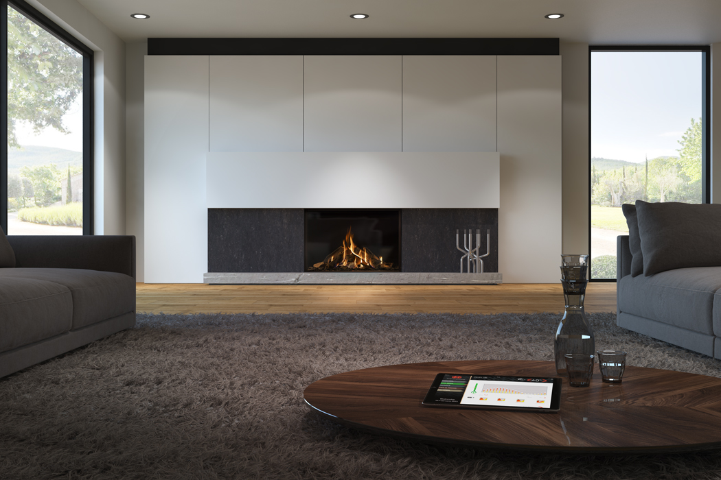 DRU Control app: Den nye DRU Control app gør det nemt og enkelt at justere flammebilledet direkte fra din tablet eller mobiltelefon. Den fungerer uafhængigt af fjernbetjeningen og giver dig mulighed for at vælge mellem fire niveauer: Luksus, komfort, økonomisk og brugerdefineret, hvor du kan justere flammebilledet efter dine egne ønsker. Når du har truffet dit valg, vil app´en oplyse dig om, hvor meget gas du vil spare i forhold til standard indstillingen. App’en giver desuden informationer om rengøring og servicering af pejsen.