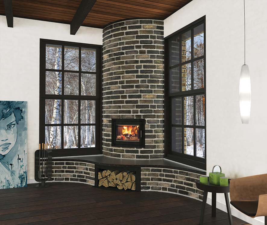 Flot stilren Meteor pejseindsats Jupiter 550, sort - venstre hængt.