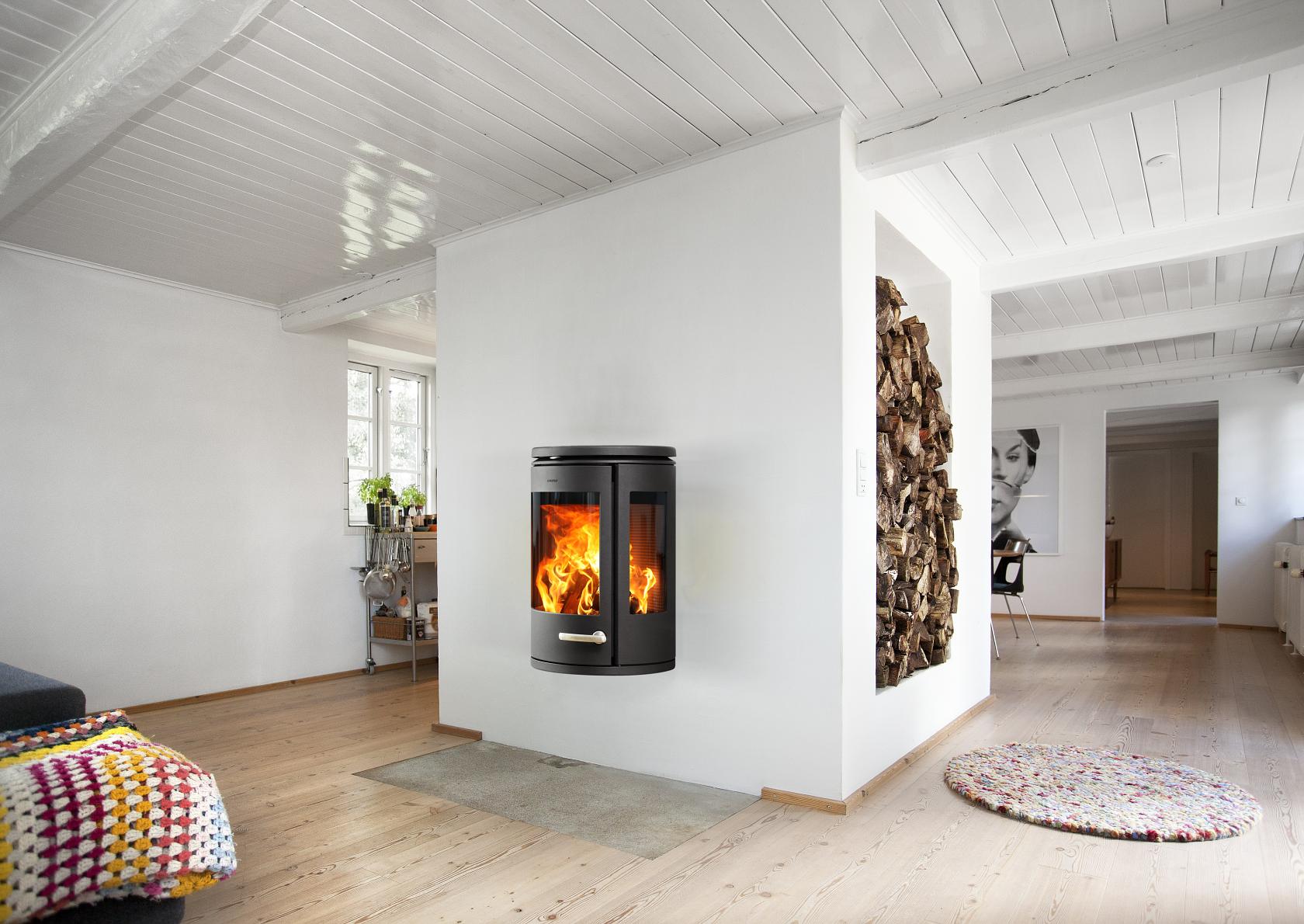 MORSØ 7970 - FLOT VÆGHÆNGT BRÆNDEOVN MED FLAMMER TIL ALLE SIDER