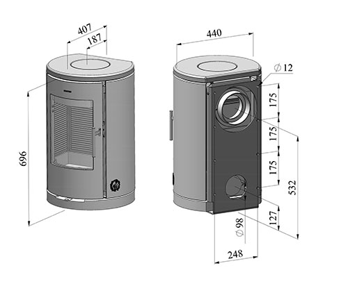 | Røgafgang bag passer til | Ø 150 |