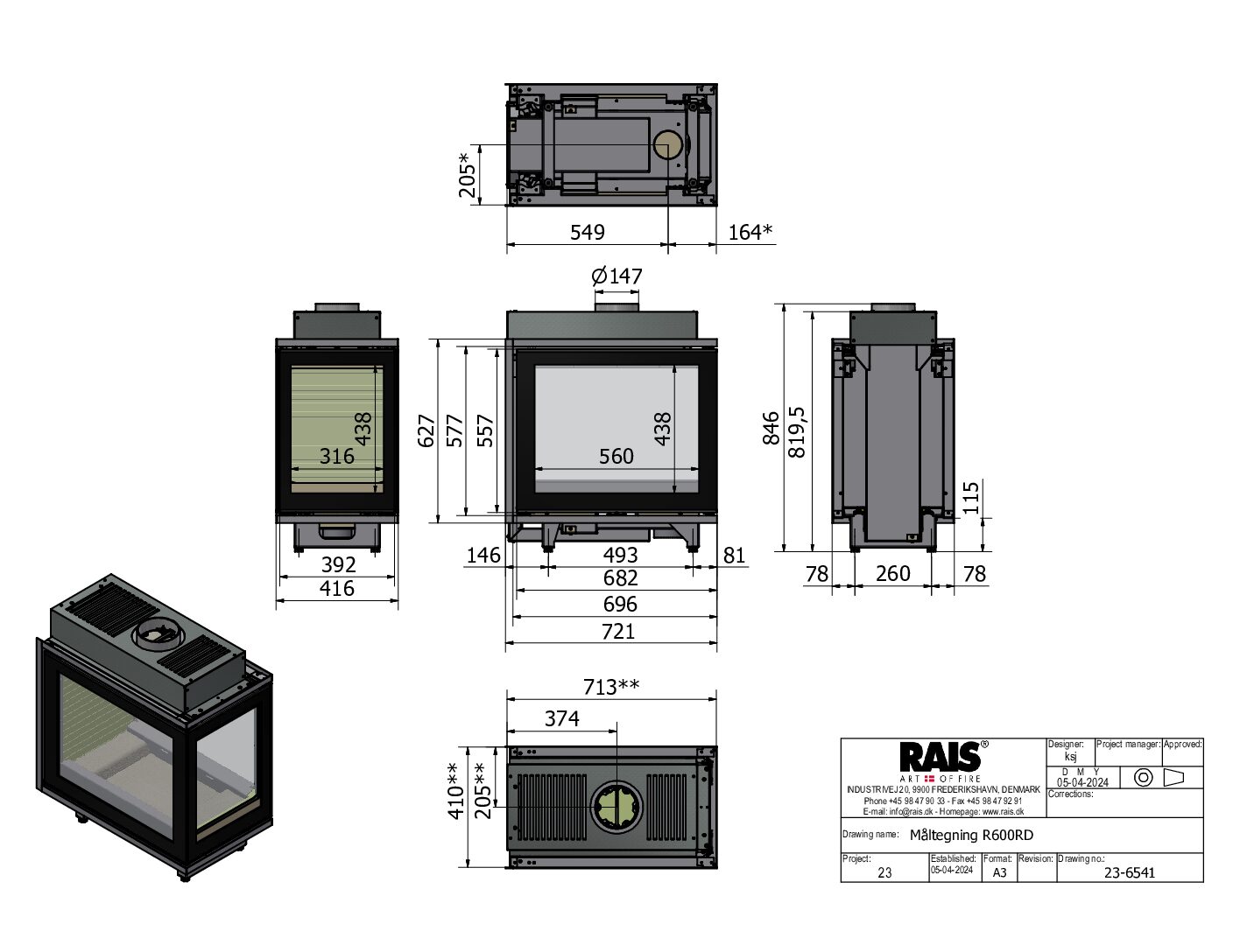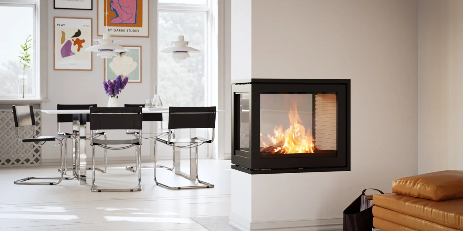 RAIS 600 RD er en gennemført rumdeler, der forener funktion og æstetik. Som videreudvikling af den populære RAIS 600-indsats giver de store, klare glasflader frit udsyn til flammerne fra begge sider.