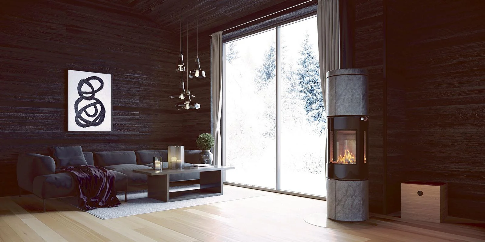 Den elegante Juno L 160 SST fremhæver flammerne med en stor, klar rude, mens de afrundede varmesten i lys nuance danner en raffineret kontrast til glas og stål. Resultatet er et moderne, skulpturelt udtryk med ilden i centrum.