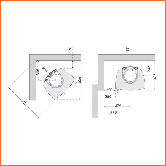 Ved 45° hjørneopstilling med isoleret rør: 170
