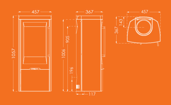 Ruden er udstyret med et effektivt ”rudeskyl”, der fører forbrændingsluften ned over ruden, så man minimerer dannelsen af sod.