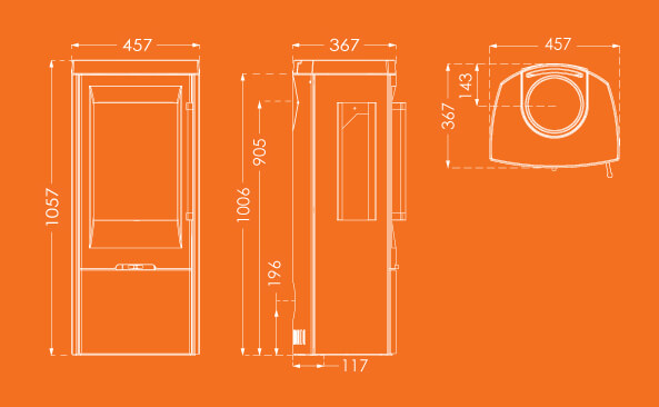 Brændkammer bredde/dybde : 320/236Afstand til brændbart